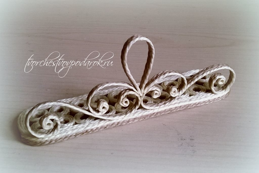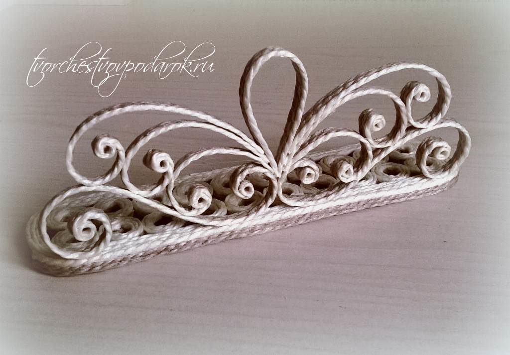 Аналогично делается вторая половинка опоры. В заключение украшается стразами у основания завитков. Аккуратно выполненное изделие повышает класс мастера-умельца.