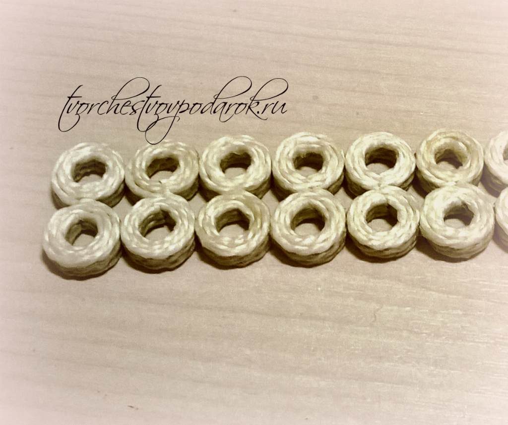 Обтягиваем по периметру наши колесики такой же полоской из склеенных нитей 3–4 раза