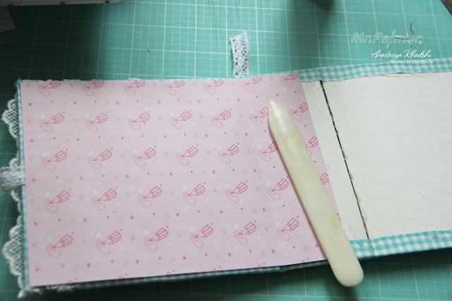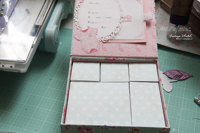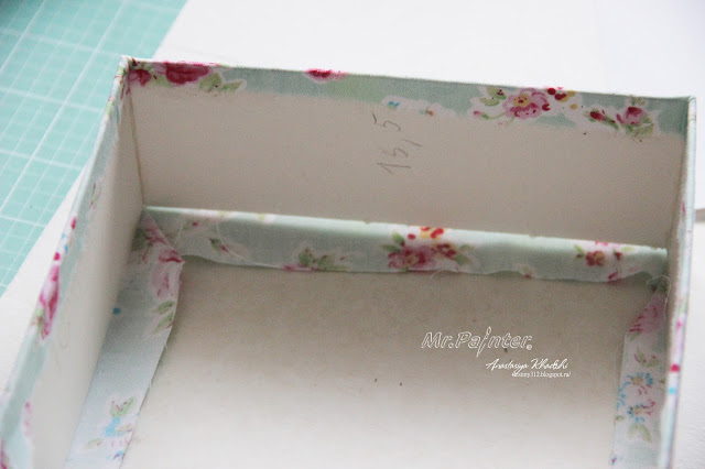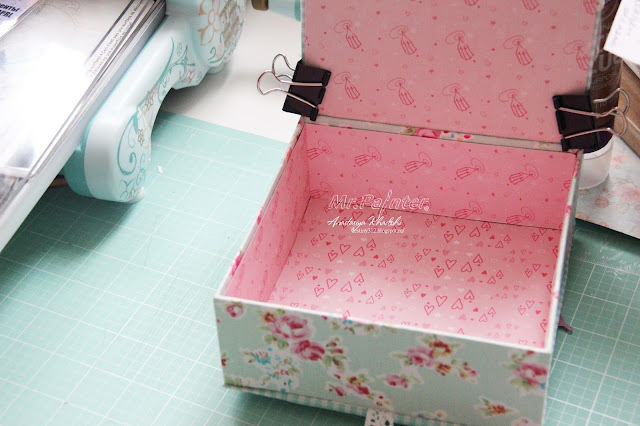 - Теперь необходимо приклеить скрап-бумагу к внутренней части коробочки, чтобы скрыть все неровности и создать красивый вид внутри.