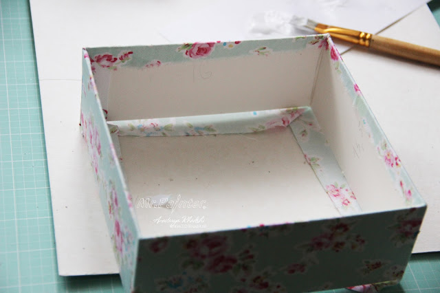 - Внутри коробки также проклеиваем бумагой стенки и дно. Вот такая красивая коробочка должна получится: