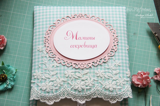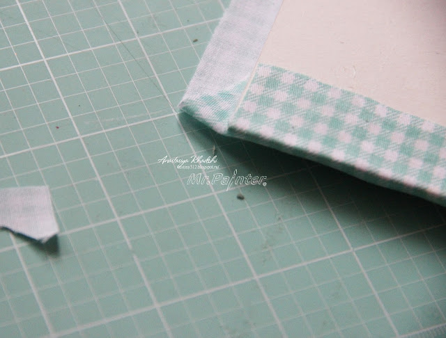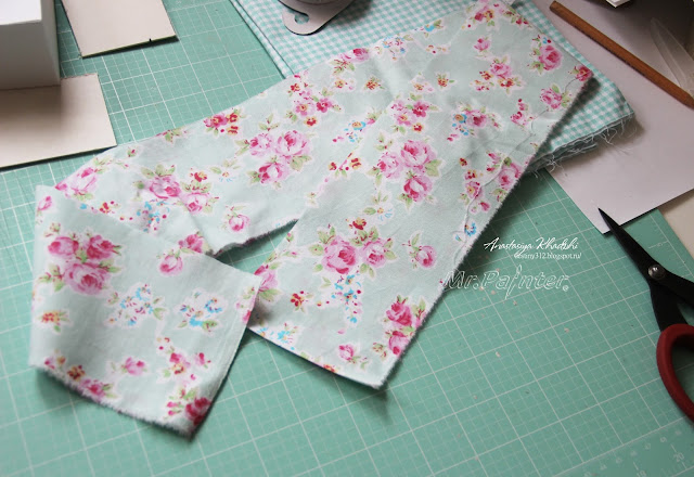 - Берём цветную, красивую ткань и вырезаем по тем же размерам, что и стеночки. При помощи этих кусочков мы их будем обклеивать, а затем украшать. Ткань можно взять розового цвета, если это «Мамины сокровища» для девочки или голубого — для мальчика. И также вы можете подобрать нейтральный цвет. К примеру, салатовый, как на фото.