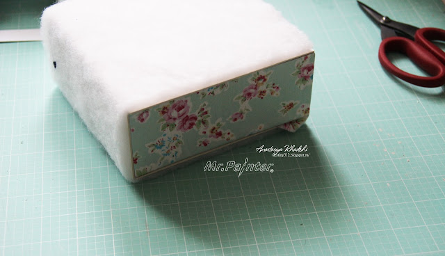 - Накладываем синтепон и примеряем к коробочке. Должно получиться, вот так: